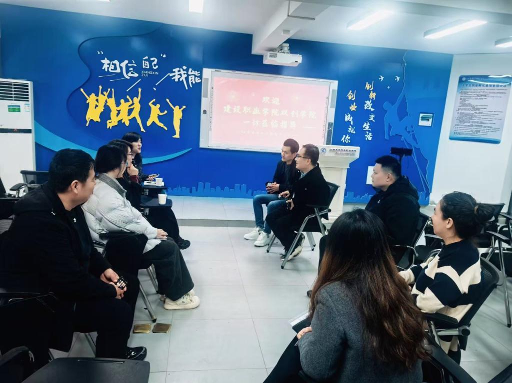 座谈会上,我校双创学院主任首先对江西建设职业学院同仁的到来表示热烈欢迎,并简要介绍了我校在创新创业教育领域的整体布局与发展理念。他指出,学校始终将创新创业教育作为人才培养的重要抓手,致力于构建“课程-实践-孵化-竞赛”四位一体的双创教育生态体系。随后,他向来宾详细介绍了我校双创工作的具体举措与显著成效。他重点分享了我校在机制建设、平台搭建、赛事组织及项目孵化等方面的先进经验。